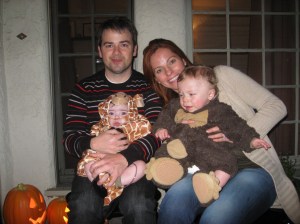 Our second Halloween was much better, with both babies home and seemingly enthused about portraying a monkey and giraffe (ok, so perhaps enthused is a bit strong, but they didn’t completely protest except when we put their hats on).