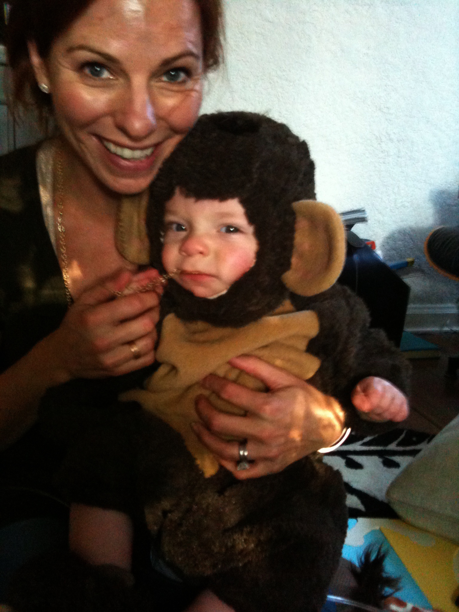 Q shows off this monkey outfit