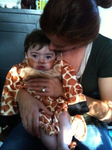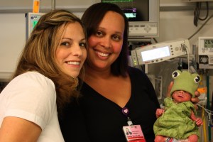 As you might imagine our first Halloween was a little crazy, although there is a lovely group at the hospital who makes costumes for babies so that their parents might enjoy the pleasure of seeing their wee ones going along with some semblance of normalcy with the outside world. Q was a frog as you can see here, and E was a pea in pod (although she was having a hard road at that time so there aren’t any shots of her in her costume readily available).