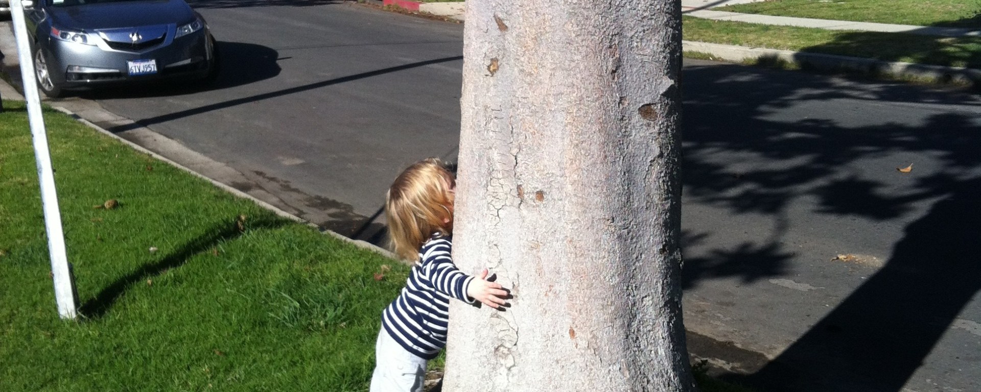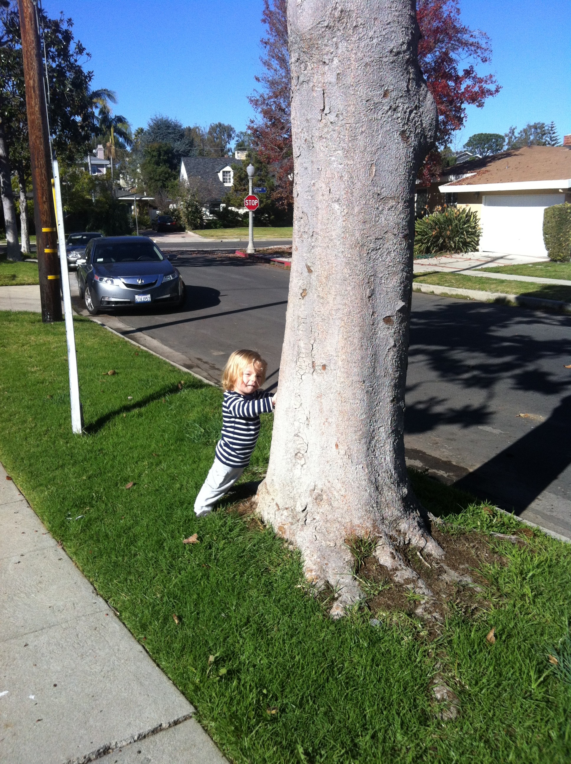 “Bi!” Q would shout back.”Big Tree.  Little Flower.” I repeated, pointing at the tree and the small flowers near by.