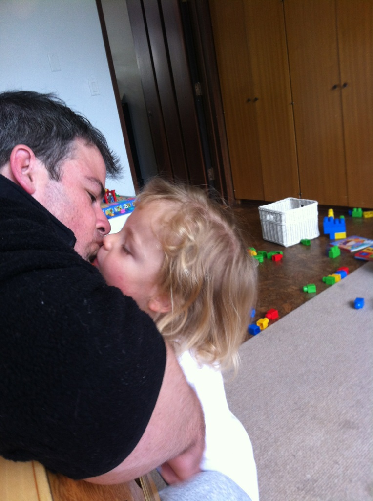 4. A kiss: Overcome with love for dada, Q leans in for kisses.