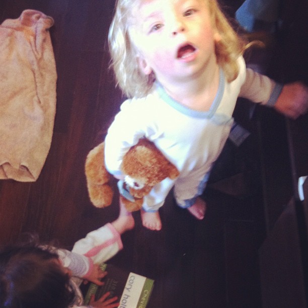 5. A bond: Something unspoken that makes you do the same thing at the same time as someone you love…a la the minis in this moment where they mirror one another with they way they grab their legs.