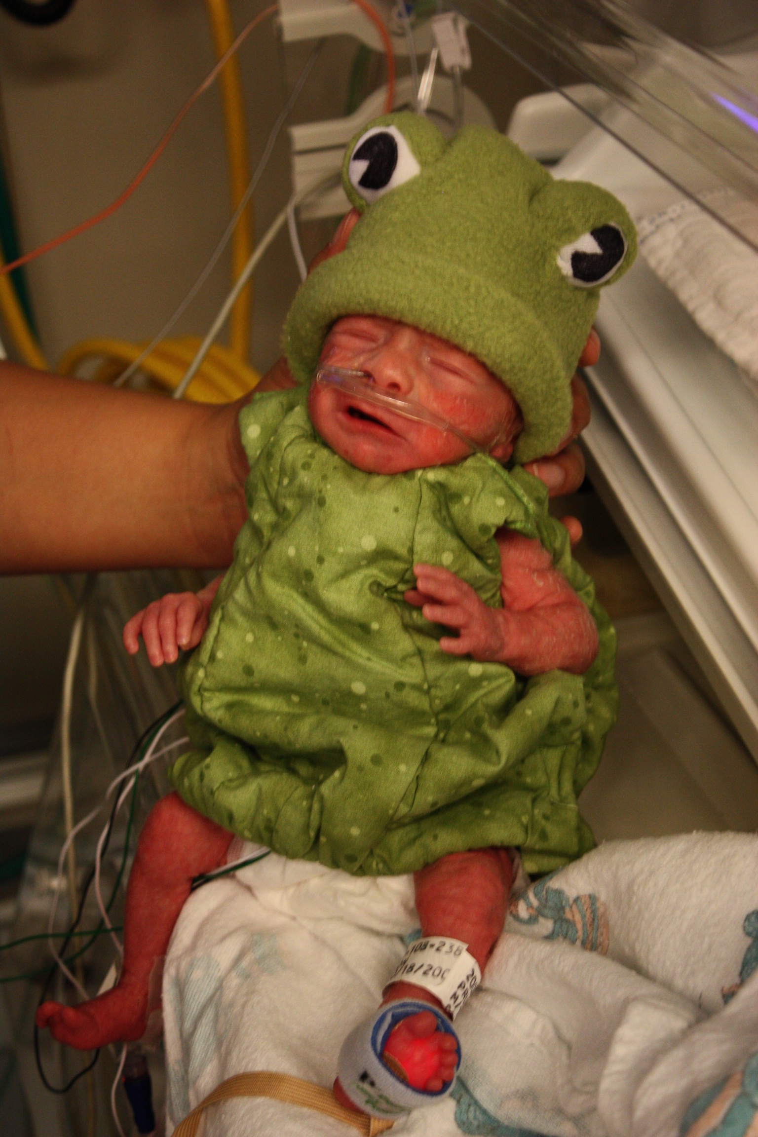He is my baby boy who, in his second week of life came down with an infection that we did not know if he would recover, but the day before was dressed as a precious frog for his first Halloween.